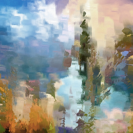The tranquil scene captures the essence of morning, inviting a sense of peace and renewal without the need for the sun's direct presence.